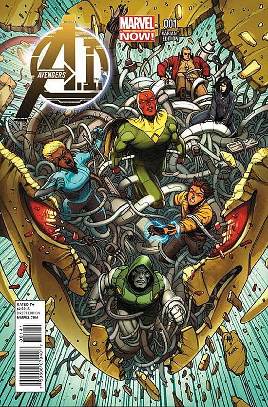 Capas das revistas que publicaram Avengers A.I. (2013) no Brasil na ordem das edições originais