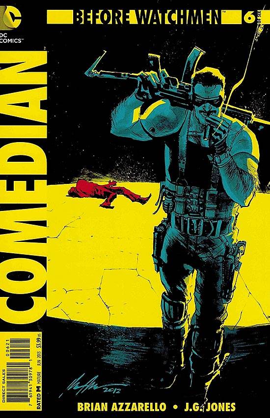 Capas das revistas que publicaram Before Watchmen: Comedian (2012) no Brasil na ordem das edições originais
