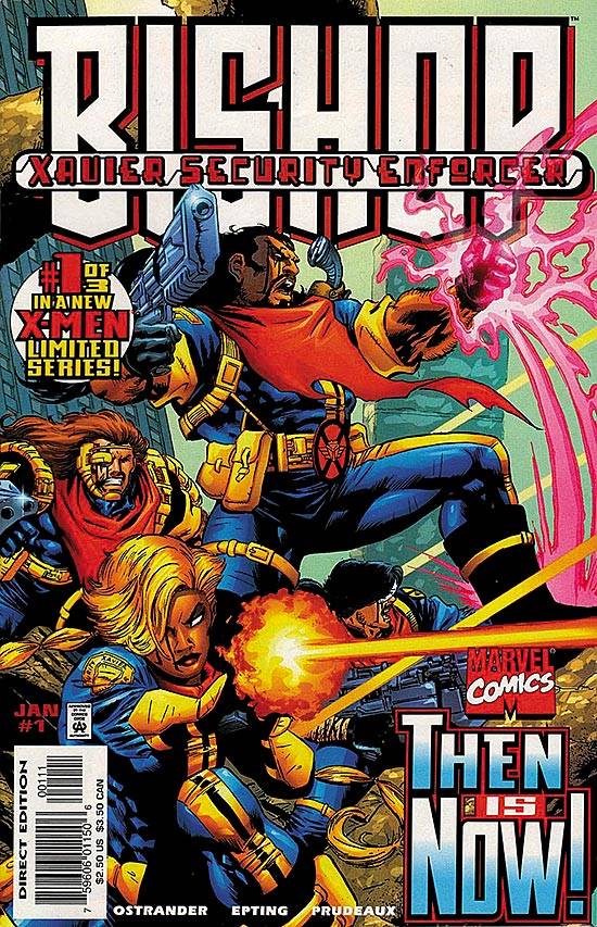 Capas das revistas que publicaram Bishop Xavier Security Enforcer (1998) no Brasil na ordem das edições originais