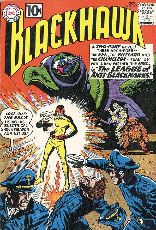 Capas das revistas que publicaram Blackhawk (1957) no Brasil na ordem das edições originais