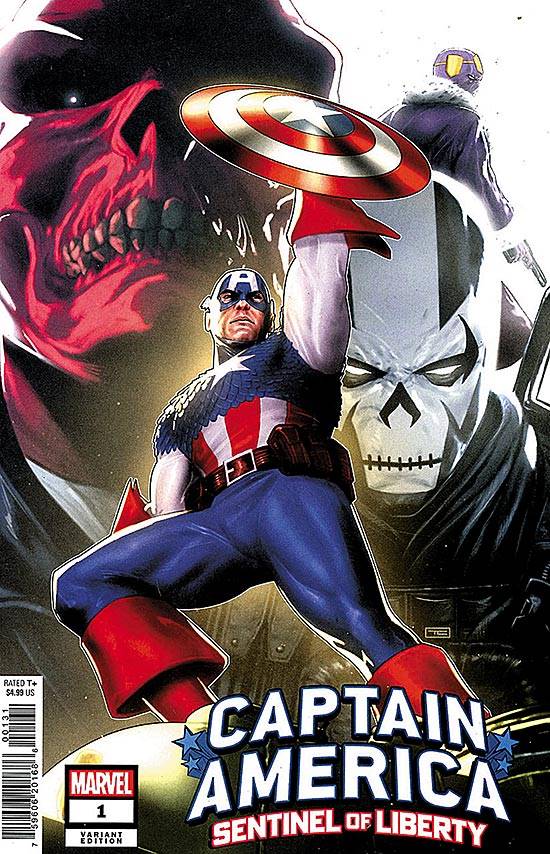 Capas das revistas que publicaram Captain America: Sentinel of Liberty (2022) no Brasil na ordem das edições originais