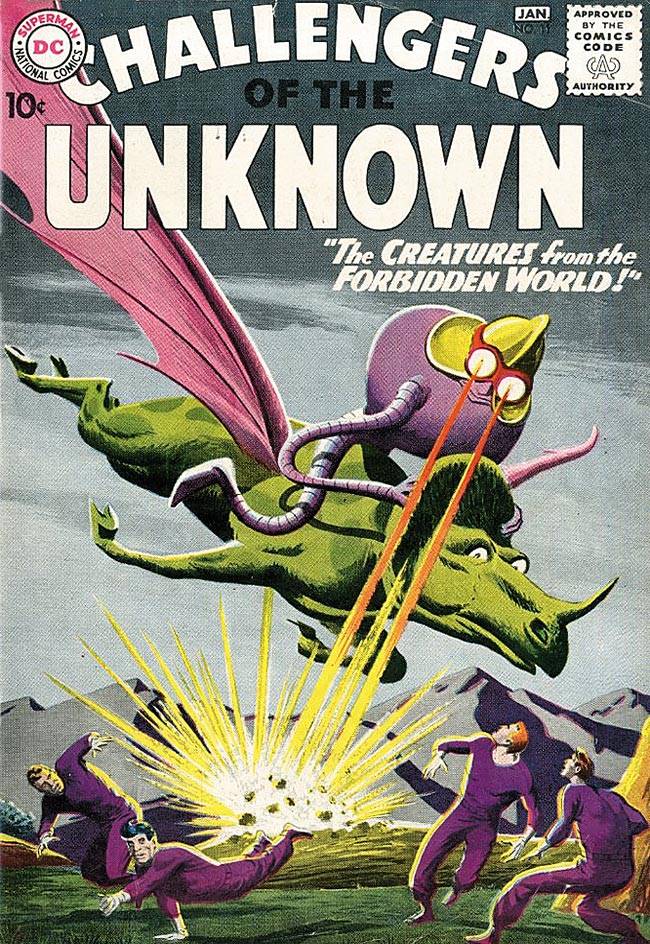 Capas das revistas que publicaram Challengers of The Unknown (1958) no Brasil na ordem das edições originais