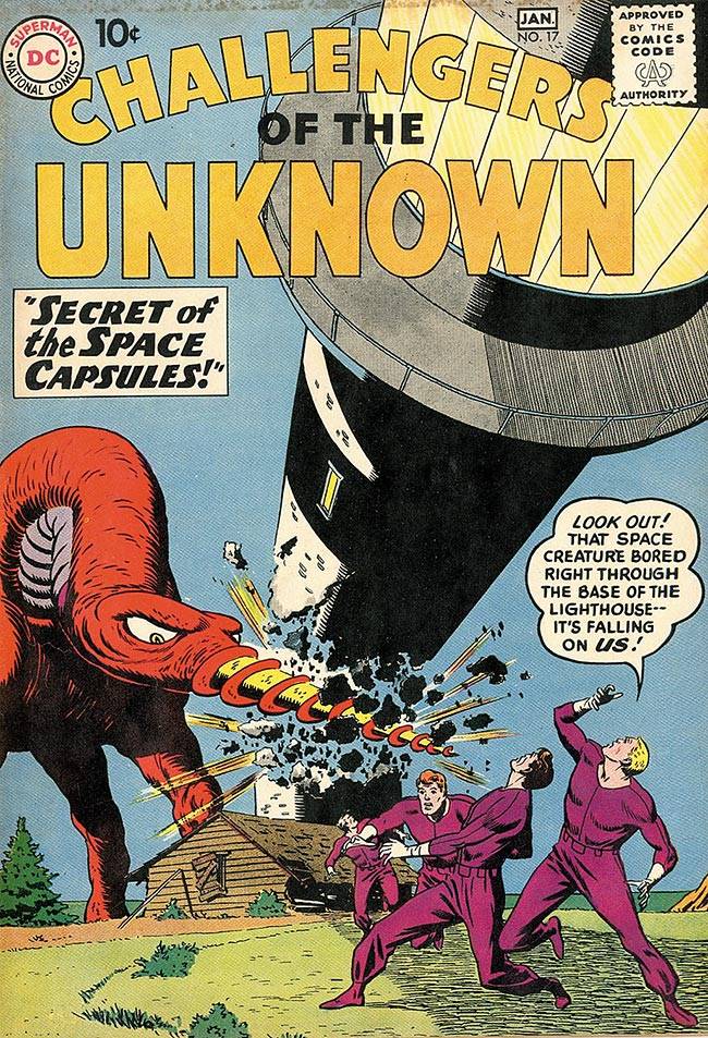 Capas das revistas que publicaram Challengers of The Unknown (1958) no Brasil na ordem das edições originais