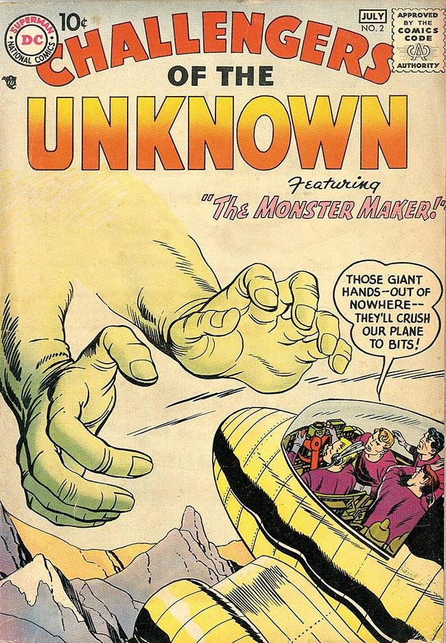 Capas das revistas que publicaram Challengers of The Unknown (1958) no Brasil na ordem das edições originais