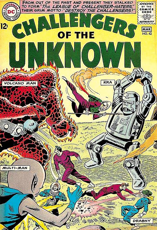 Capas das revistas que publicaram Challengers of The Unknown (1958) no Brasil na ordem das edições originais
