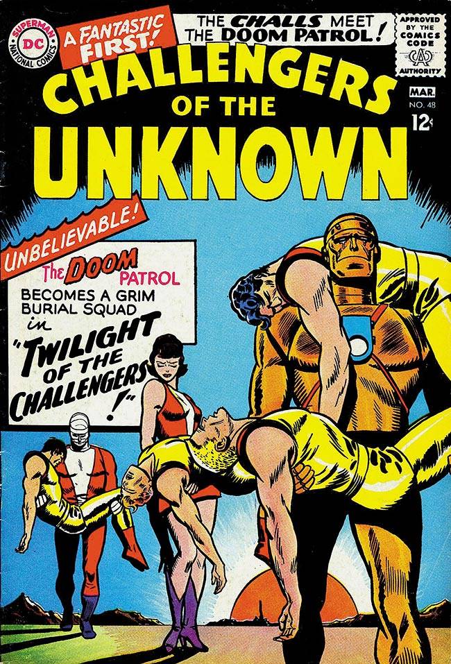 Capas das revistas que publicaram Challengers of The Unknown (1958) no Brasil na ordem das edições originais