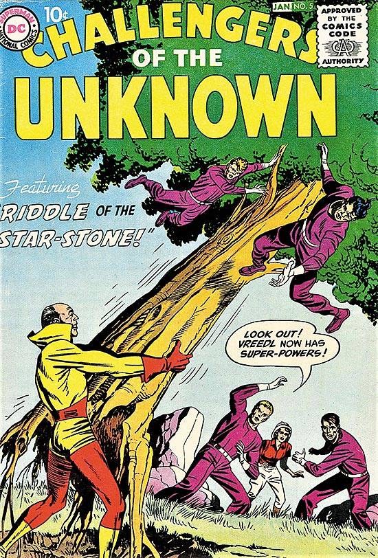 Capas das revistas que publicaram Challengers of The Unknown (1958) no Brasil na ordem das edições originais