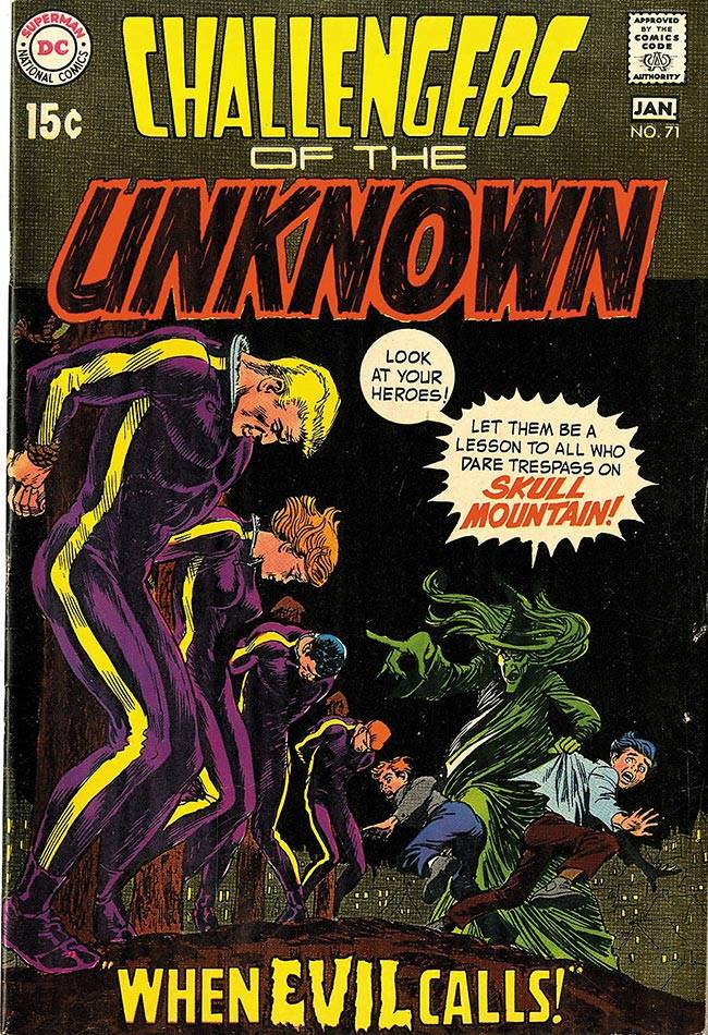 Capas das revistas que publicaram Challengers of The Unknown (1958) no Brasil na ordem das edições originais
