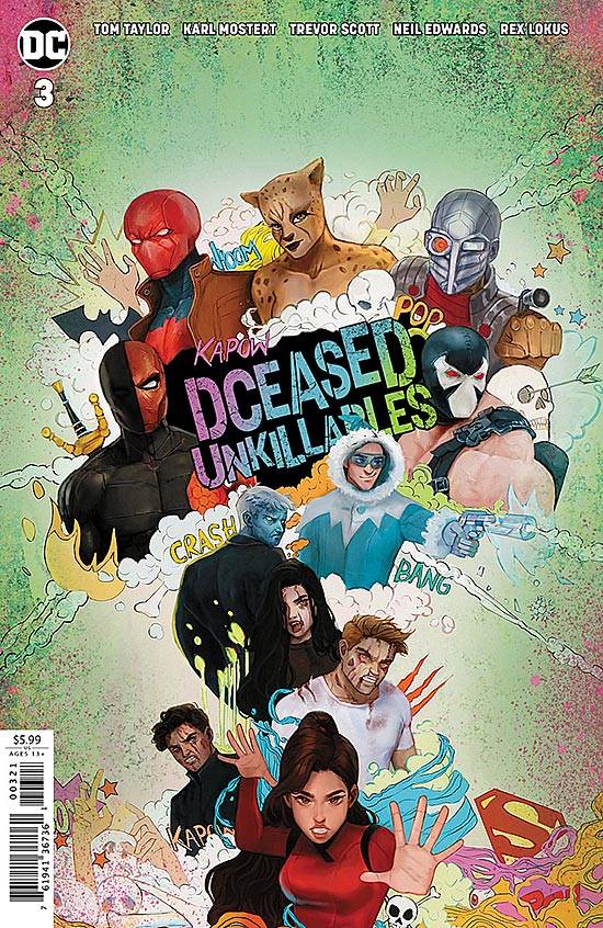 Capas das revistas que publicaram Dceased: Unkillables (2020) no Brasil na ordem das edições originais
