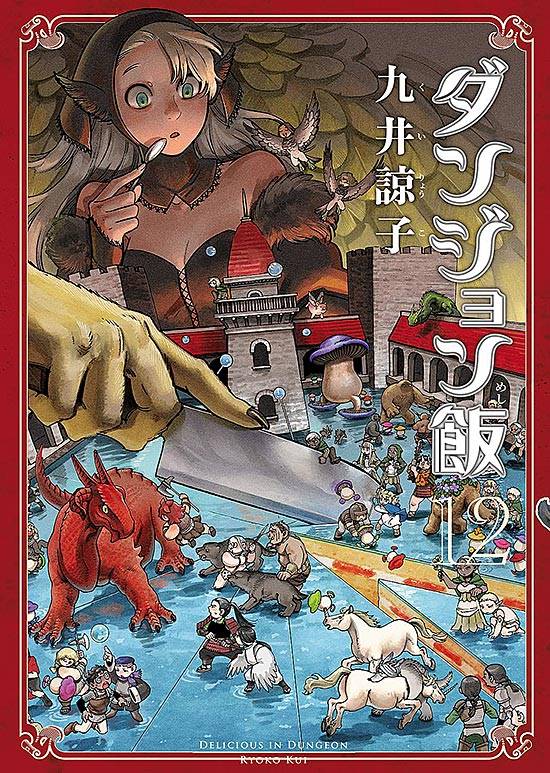 Capas das revistas que publicaram Dungeon Meshi (2014) no Brasil na ordem das edições originais