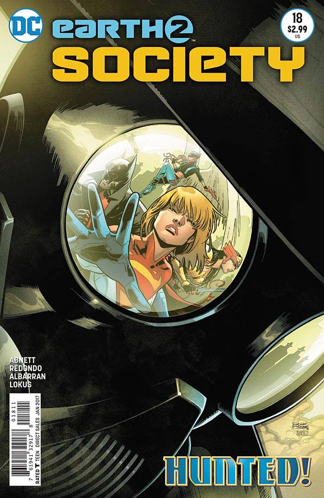 Capas das revistas que publicaram Earth 2: Society (2015) no Brasil na ordem das edições originais