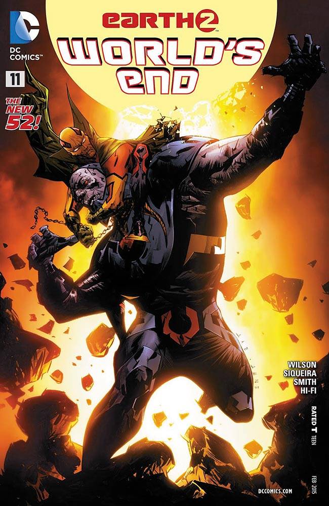 Capas das revistas que publicaram Earth 2: World's End (2014) no Brasil na ordem das edições originais