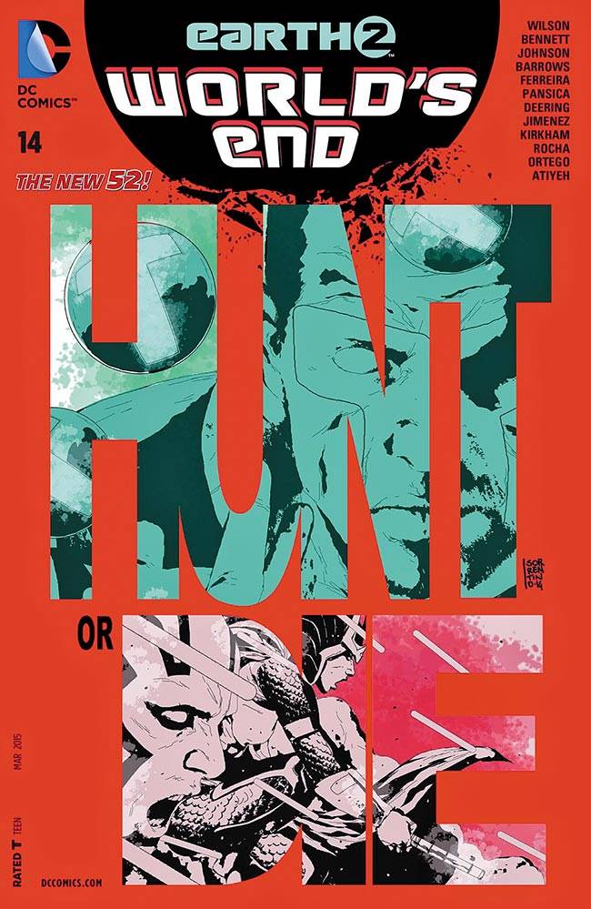 Capas das revistas que publicaram Earth 2: World's End (2014) no Brasil na ordem das edições originais