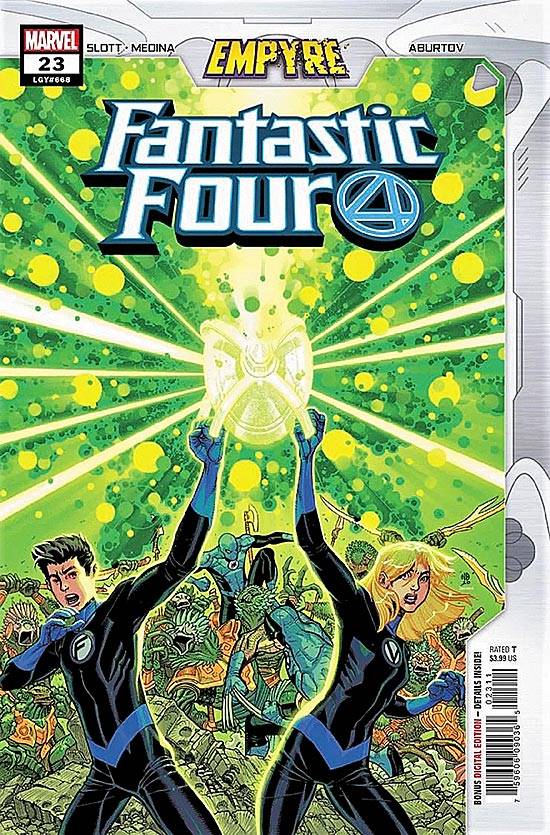 Capas das revistas que publicaram Fantastic Four (2018) no Brasil na ordem das edições originais