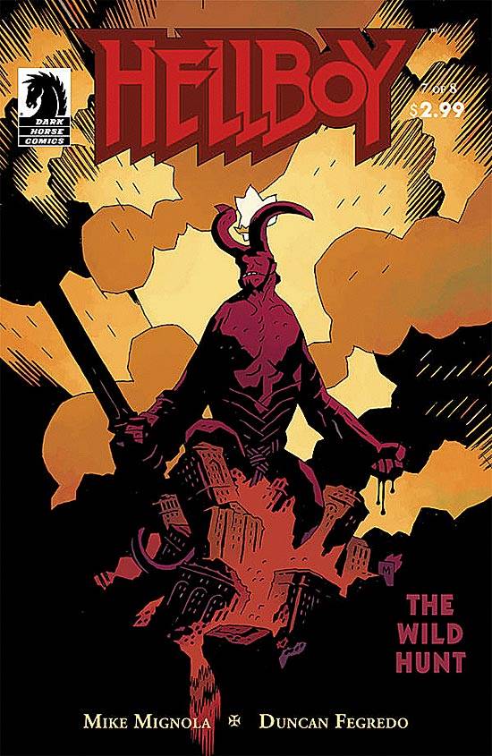 Capas das revistas que publicaram Hellboy: Wild Hunt (2008) no Brasil na ordem das edições originais