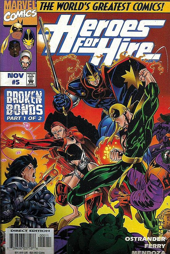 Capas das revistas que publicaram Heroes For Hire (1997) no Brasil na ordem das edições originais