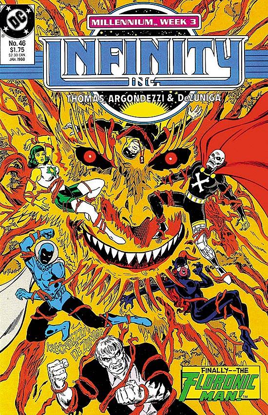 Capas das revistas que publicaram Infinity, Inc. (1984) no Brasil na ordem das edições originais