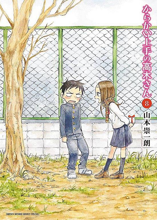 Capas das revistas que publicaram Karakai Jouzu No Takagi-San (2014) no Brasil na ordem das edições originais
