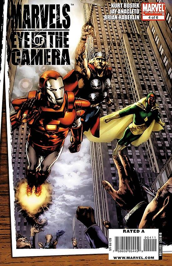 Capas das revistas que publicaram Marvels: Eye of The Camera (2009) no Brasil na ordem das edições originais