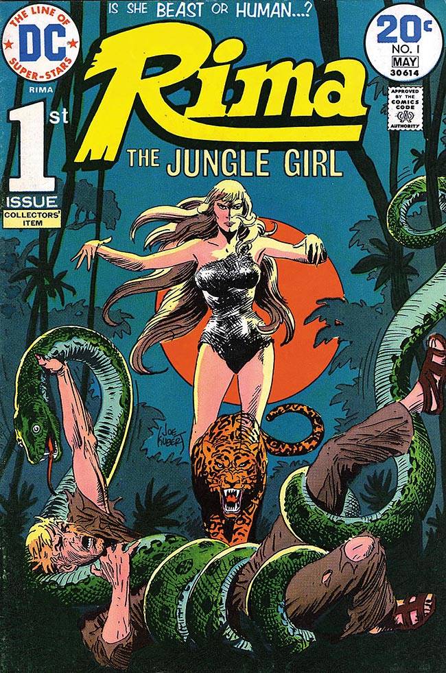 Capas das revistas que publicaram Rima, The Jungle Girl (1974) no Brasil na ordem das edições originais