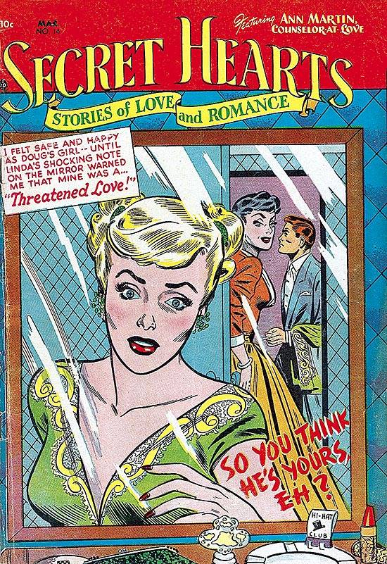 Capas das revistas que publicaram Secret Hearts (1949) no Brasil na ordem das edições originais