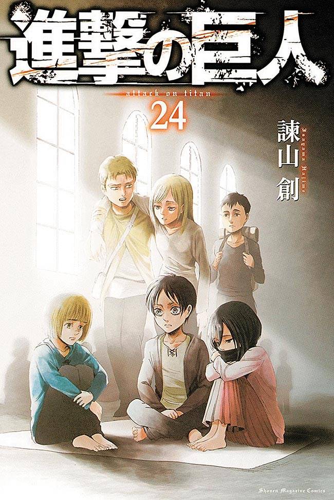 Capas das revistas que publicaram Shingeki No Kyojin (2010) no Brasil na ordem das edições originais