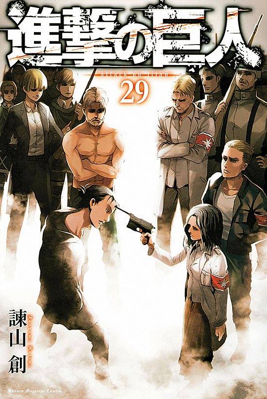 Capas das revistas que publicaram Shingeki No Kyojin (2010) no Brasil na ordem das edições originais