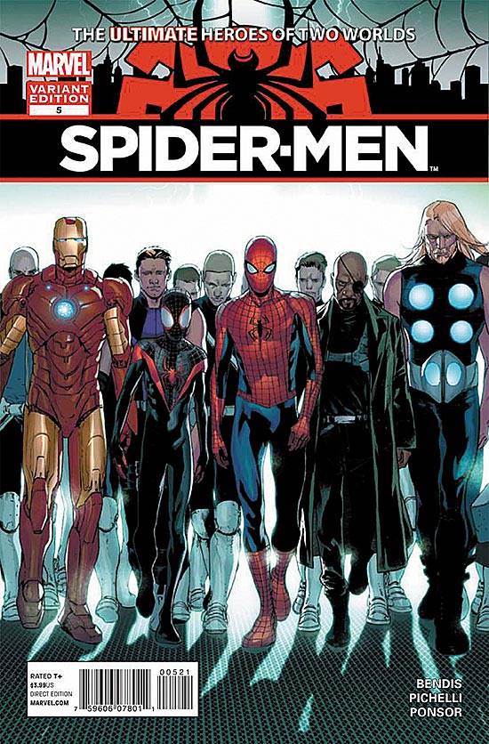 Capas das revistas que publicaram Spider-Men (2012) no Brasil na ordem das edições originais