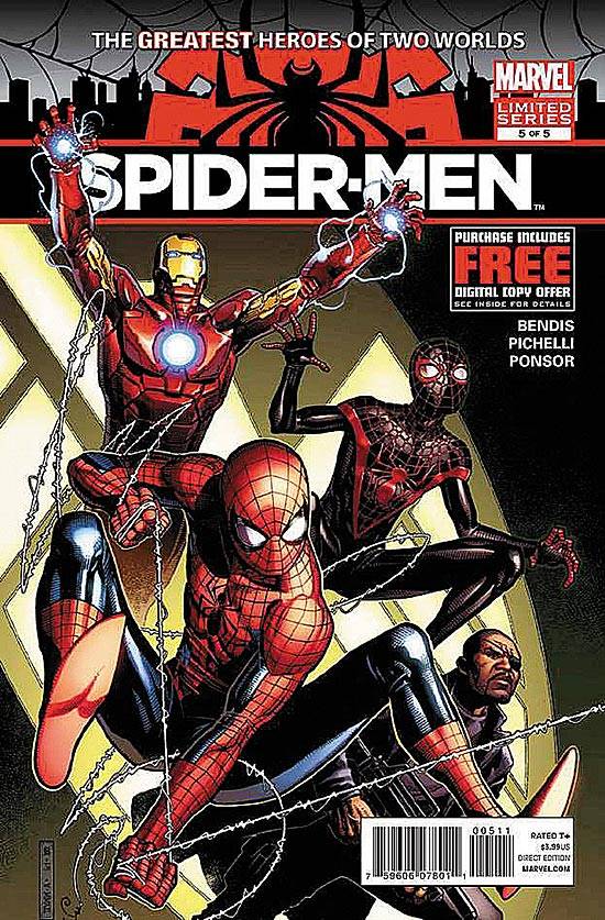 Capas das revistas que publicaram Spider-Men (2012) no Brasil na ordem das edições originais
