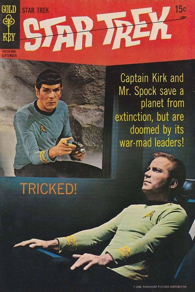 A foto principal da capa é do episódio “Dagger of the Mind”(1966) e a menor (com fotolito invertido) de “The Galileo Seven” (1967)