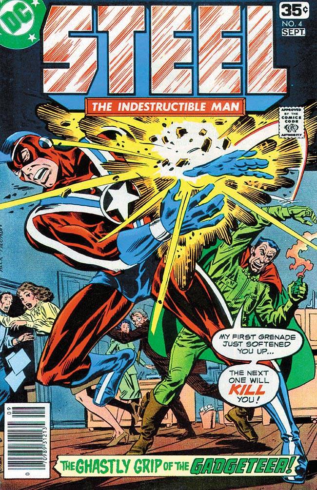 Capas das revistas que publicaram Steel, The Indestructible Man (1978) no Brasil na ordem das edições originais