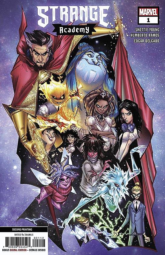 Capas das revistas que publicaram Strange Academy (2020) no Brasil na ordem das edições originais