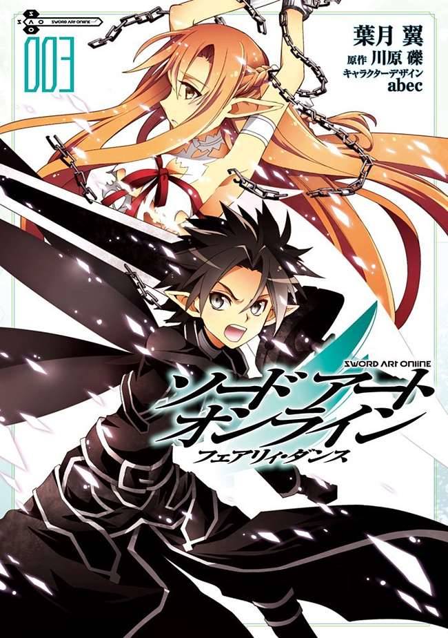 Capas das revistas que publicaram Sword Art Online: Fairy Dance (2012) no Brasil na ordem das edições originais