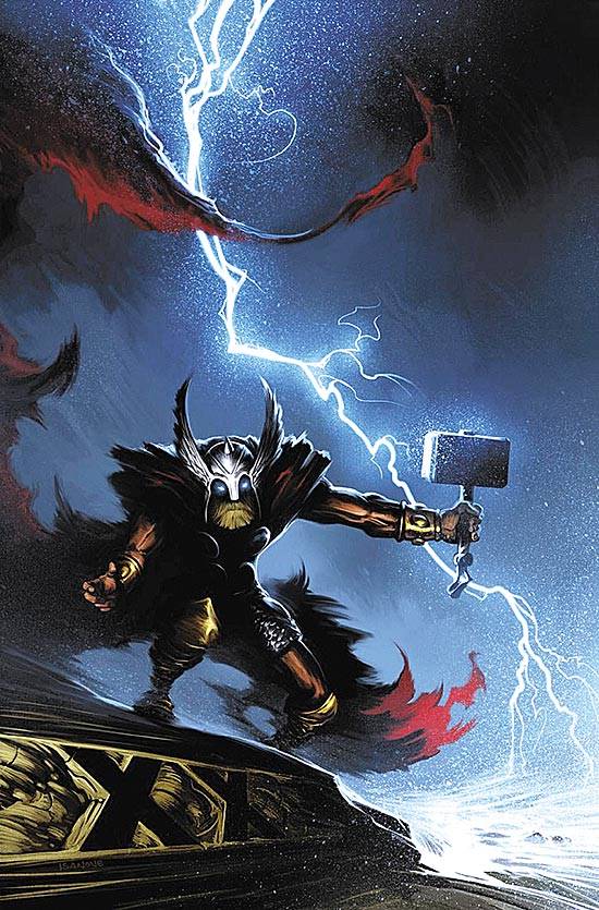 Capas das revistas que publicaram Thor (2018) no Brasil na ordem das edições originais