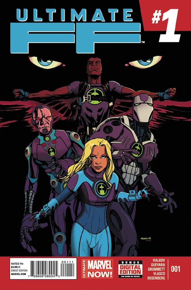 Capas das revistas que publicaram Ultimate F F (2014) no Brasil na ordem das edições originais