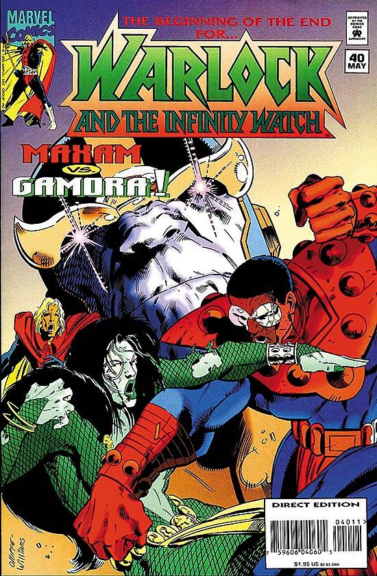 Capas das revistas que publicaram Warlock And The Infinity Watch (1992) no Brasil na ordem das edições originais