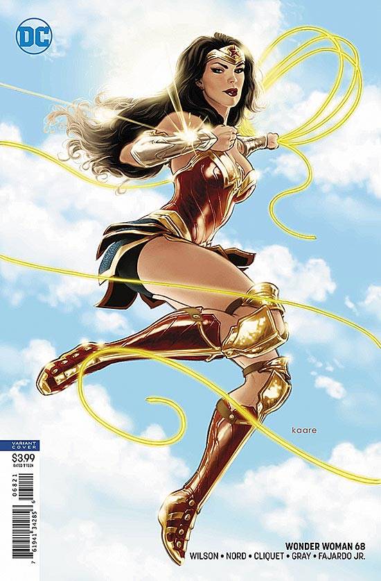 Capas das revistas que publicaram Wonder Woman (2016) no Brasil na ordem das edições originais