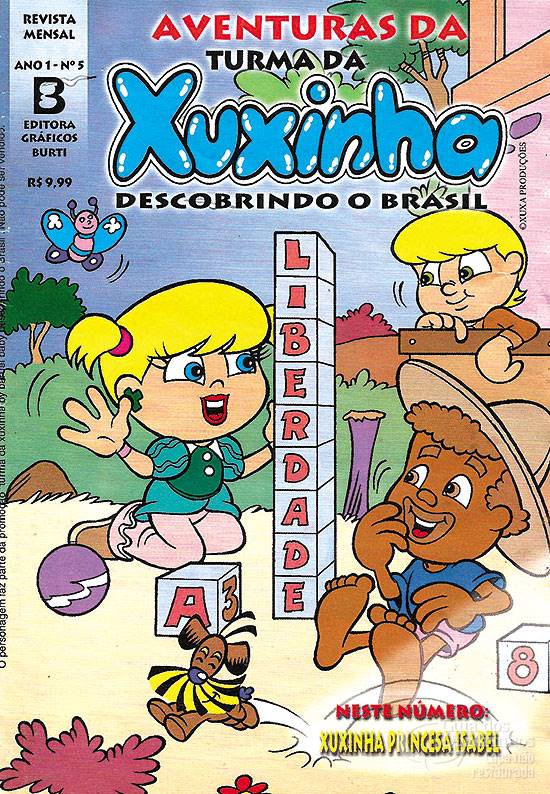 Xuxinha explica a origem das raças no Brasil e a importânica da libertação dos escravos através da Lei Áurea, assinada pela princesa Isabel.