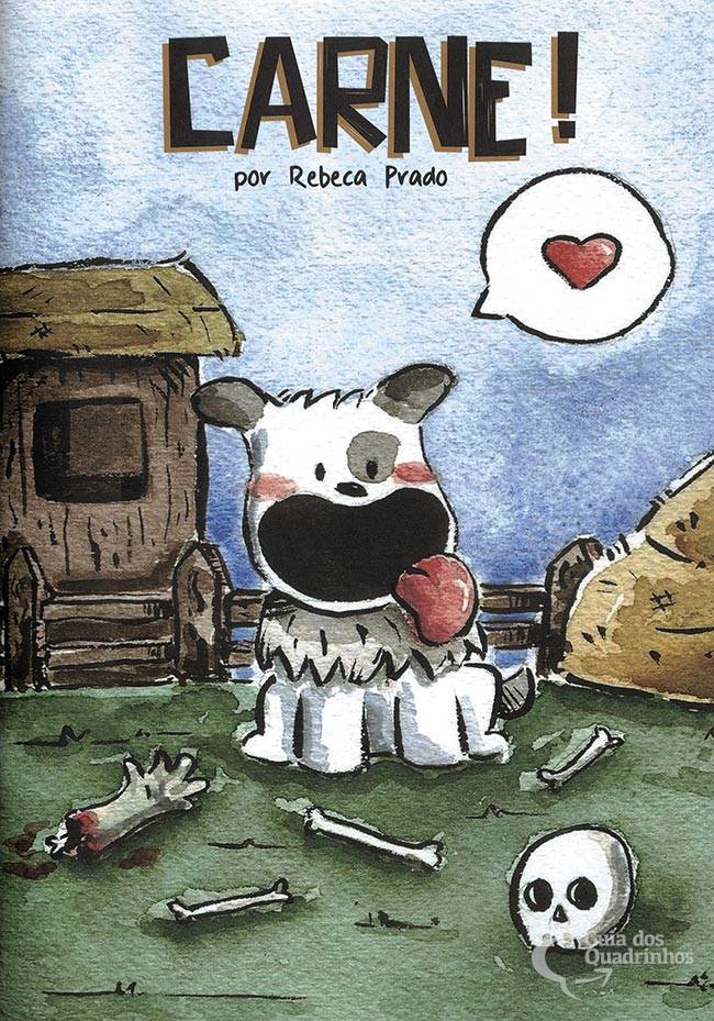 Cada página contém uma sátira de pensamento do cachorrinho Carne.