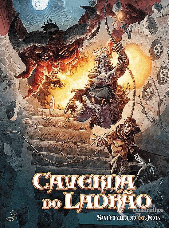 Acompanhe em Caverna do Ladrão as desventuras desses dois personagens desastrados e de uma trupe formada pelos ladinos, capangas, saqueadores, salafrários e embusteiros mais atrapalhados de todos os reinos.