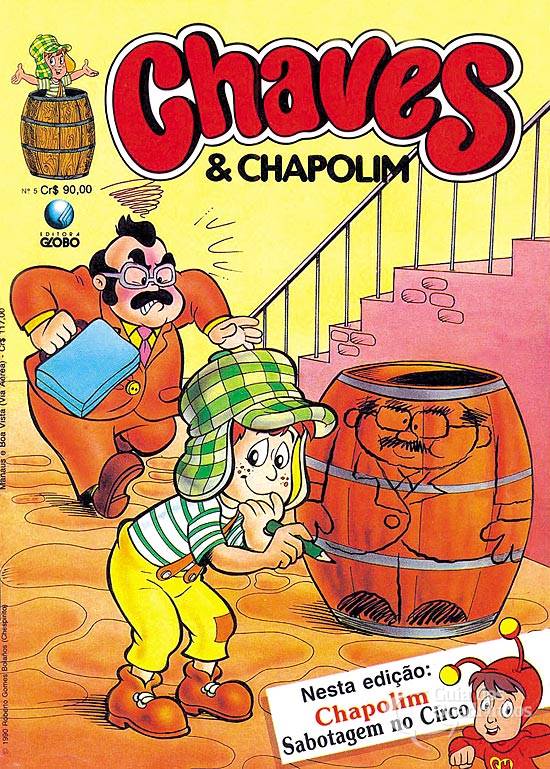 (na capa, Seu Barriga e Chaves)
