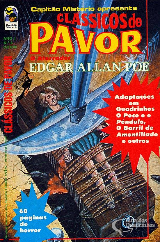 Titulo original: "The pit and the pendulum". A edição conta com um texto sobre o autor, Poe, e outro texto sobre Vicent Price, ator que atuou nos filmes "Pipa de amontillado", "O gato negro" e "Morella", todos adaptações das obras de Poe.