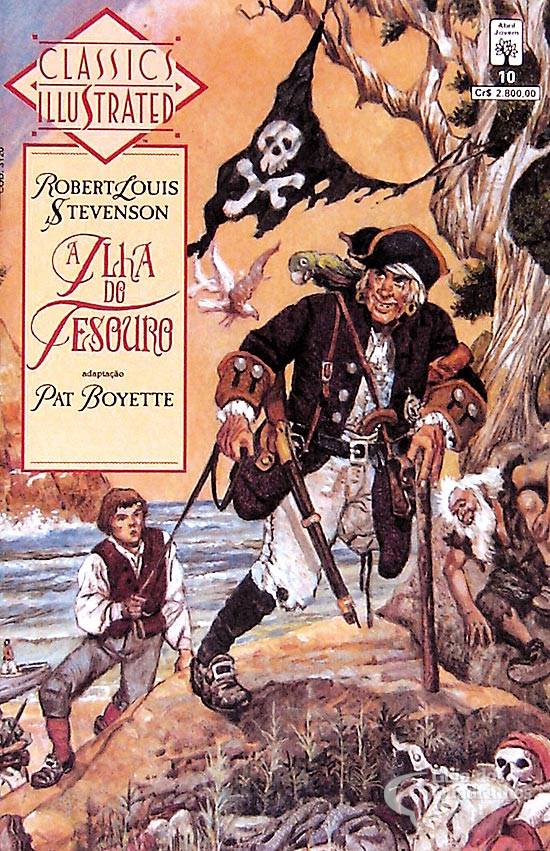 Quadrinização da história de Robert Louis Stevenson, “A ilha do tesouro” (“Treasure island”), publicada originalmente em forma seriada, entre 1881-82, na revista “Young Folks” (em 1883 foi publicada em livro). Jim Hawkins, garoto cujos pais são proprietários e moradores de uma pequena pensão numa cidade litorânea da Inglaterra, vive diversas aventuras após a chegada de um velho lobo do mar. Diversos fatos se sucedem, até que o menino se vê em um navio indo em busca de um tesouro.