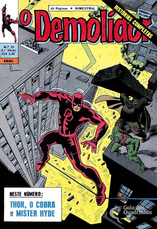 Para capturar o Cobra e Mister Hyde, o Demolidor tem a brilhante ideia de se fantasiar como o maior inimigo da dupla de facínoras, a fim de atraí-los pra uma armadilha. Mas, para seu homérico azar, nosso herói não contava que “o próprio Deus do Trovão” fosse aparecer pra tirar satisfações!!