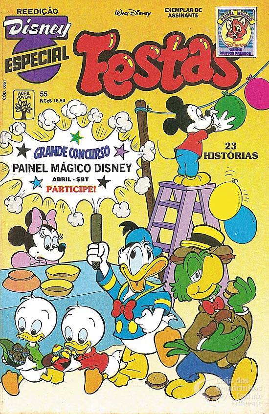 Título original americano: “Surprise party”. Originalmente com oito páginas e duas tiras por página, foi remontada pela Abril de modo a ter três tiras por página.