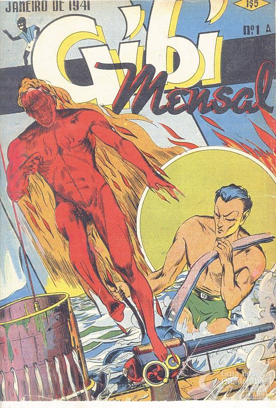 Em cores. Conclusão da batalha entre Tocha Humana e Namor (vista no “Gibi" 252 - 1ª série”, dez. 1940).