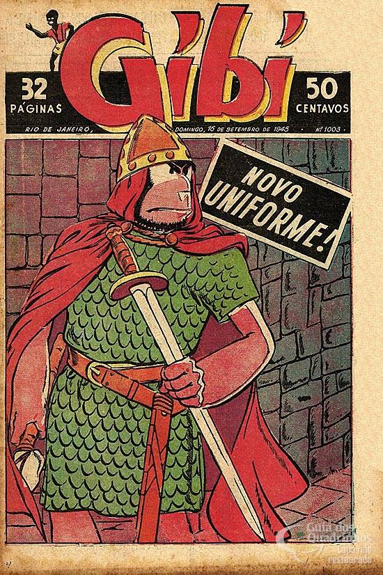 HQ da página central colorida. Brucutu está no ano de 1170 disfarçado como guerreiro medieval com a missão de buscar a planta do castelo onde, no presente, seus amigos Papanatas e Bomba estão correndo perigo.