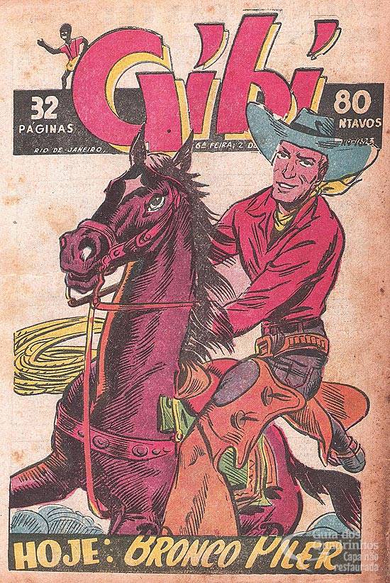 Dominical (publicada originalmente em 7 de novembro de 1948) colorida das páginas centrais. Capítulo 1 de uma história sem título em português de “Red Ryder” (“Bronco Piler”, na versão do “Gibi”).