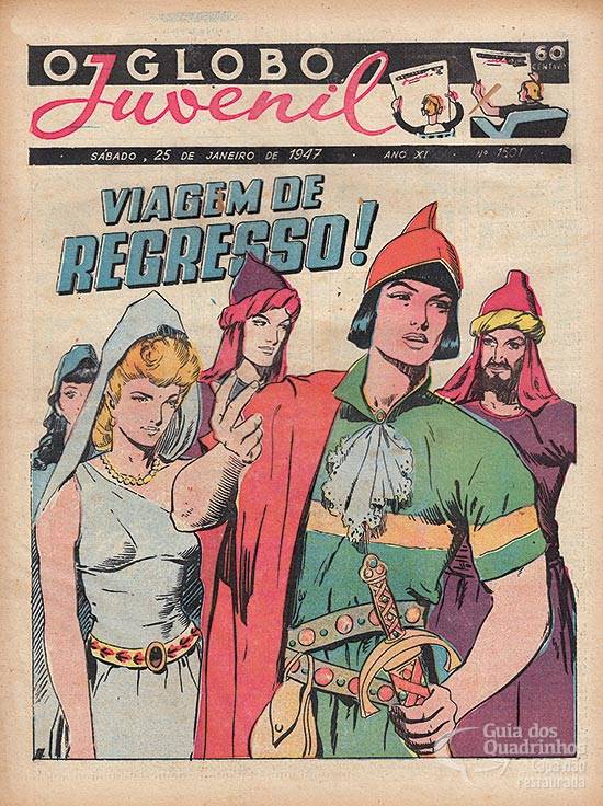 Prancha colorida da última capa. Capítulo 84 de uma aventura de Brick Bradford. Publicada originalmente em 19 de setembro de 1943.