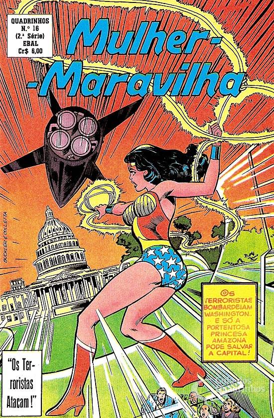 Título original americano: “The terrorist dooms”. 17 páginas. Mulher-Maravilha retorna de sua viagem ao mundo de 1945 (n° anterior). Já no presente, ela enfrenta terroristas que ameaçam Washington. Baseado na 2ª temporada (1977-78) da série de TV.